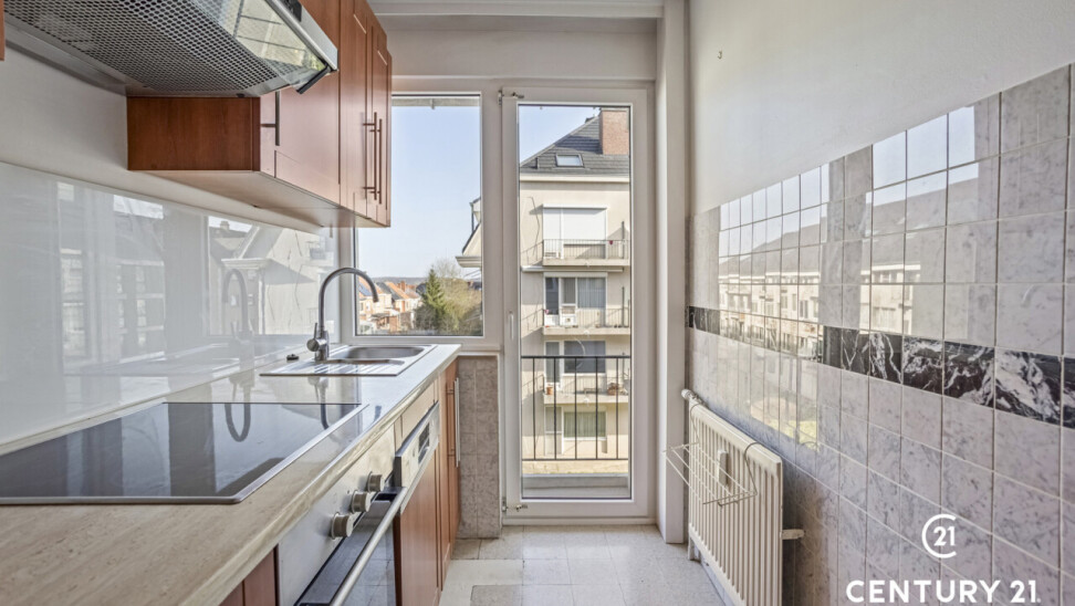 Instapklaar 2-kamer appartement met 2 terrassen en kelder in rustige, residentiële buurt te Kessel-Lo vlakbij Leuven. Veel lichtinval, mooie zichten en sfeervol! Op 2e verdiep in kleinschalig en goed onderhouden gebouw, praktisch ingedeeld: inkomhal met vestiairekast, WC, leefruimte met eetplaats en zithoek met sierhaard, geïnstalleerde keuken met wasplaats, 2 slaapkamers en badkamer met douche en wastafel. 2 kleinere terrassen aan de voor en -achterkant. Renovaties: badkamer, keuken, dubbele beglazing PVC, veiligheids en -branddeur. Parket in de leefruimte. Gunstig EPC. Nutsvoorzieningen water en verwarming collectief, elektriciteit apart. Lift. Op -1 een privatieve ruime opbergkelder. Gemeensch. fietsenstalling. Provisie: 190€/m incl. verbruik. Fijne locatie: vlot bereikbaar met privé- en openbaar vervoer, E40 op 5’, bushalte op 100m, Leuven-centrum en station op fietsafstand. Winkels regio Koning Albertlaan en Tiensesteenweg, Scholen (Zonnebloem, Ark), sportcentra, dokter, bakker, apotheek, bib en zwembad in directe nabijheid. Mooie wandel- en fietsroutes. Park Michotte/De Bron vlakbij. Ideaal voor single, (startend of ouder) koppel en investeerder (verhuurwaarde 925,-€ + kosten). Kortom: aanrader en mooie kans om aan te kopen! Dank om info en bezoek aan te vragen per e-mail op info@century21skyline.be.
