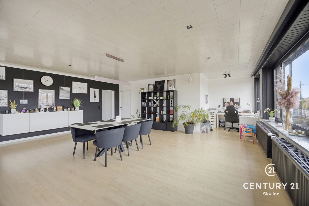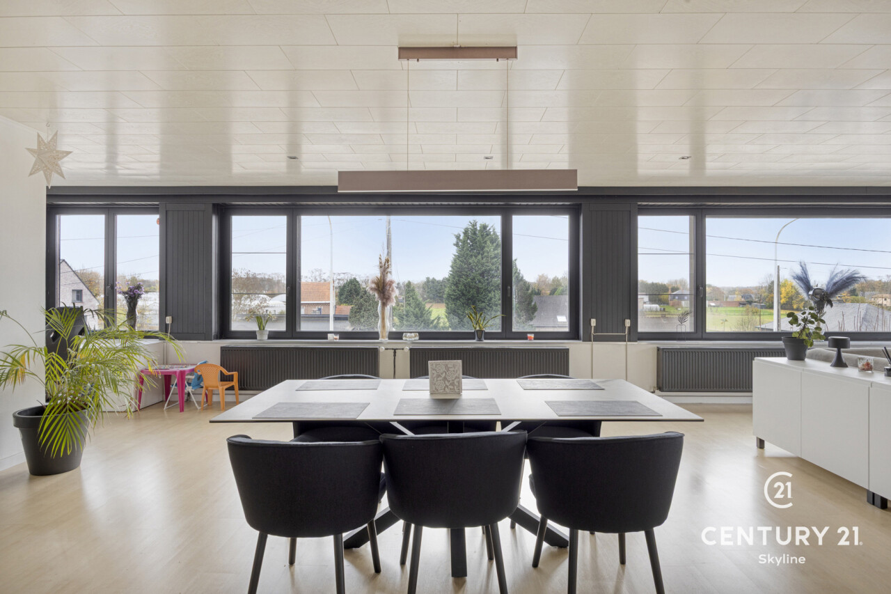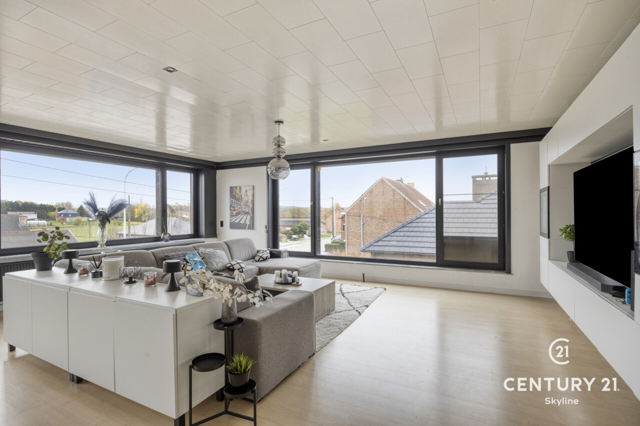 Dit uitzonderlijk ruim en lichtrijk loft-appartement in Tielt-Winge verrast meteen door zijn grote, open leefruimte met prachtige glaspartijen, aangenaam loftgevoel en comfortabele indeling. De leefruimte vormt het hart van het appartement, met plaats voor een ruime zithoek, eetgedeelte en een praktische bureauhoek voor wie graag thuiswerkt. Aansluitend ligt de vernieuwde leefkeuken met groenzicht en toegang tot het ochtendterras. Verder beschikt het appartement over 2 slaapkamers, badkamer en berging/wasplaats. Onder in het gebouw bevindt zich een zeer ruime kelder van ongeveer 50 m² die momenteel tegen vergoeding wordt gebruikt als kleine woonunit (bezett. ter bede), wat een interessante mooie opbrengst oplevert van 550€/m. Achter het gebouw vind je een volledig privatieve buitenruimte met een afgesloten garagebox met elektriciteit en een grote privé-tuin van 4a58 met tuinhuis en een tweede zonneterras. Voor het gebouw zijn bovendien 2 autostaanplaatsen inbegrepen. Het appartement is technisch in orde met een gunstig EPC, conforme elektriciteit, dubbel glas en elektrische rolluiken. Er zijn geen gemeenschappelijke kosten en de ligging is uitstekend: bus voor de deur, de E314 op 10 minuten, en winkels, scholen, sportfaciliteiten en het Gouden-Kruispunt op wandelafstand. Dit is de ideale opportuniteit voor wie op zoek is naar een ruim, licht en comfortabel appartement met een grote tuin én een aantrekkelijk rendementspotentieel! Info en bezoek via info@century21skyline.be