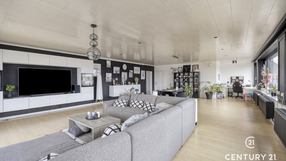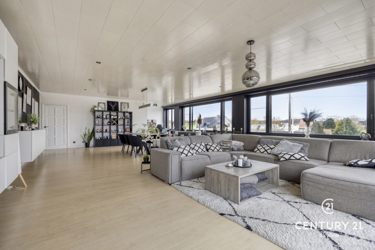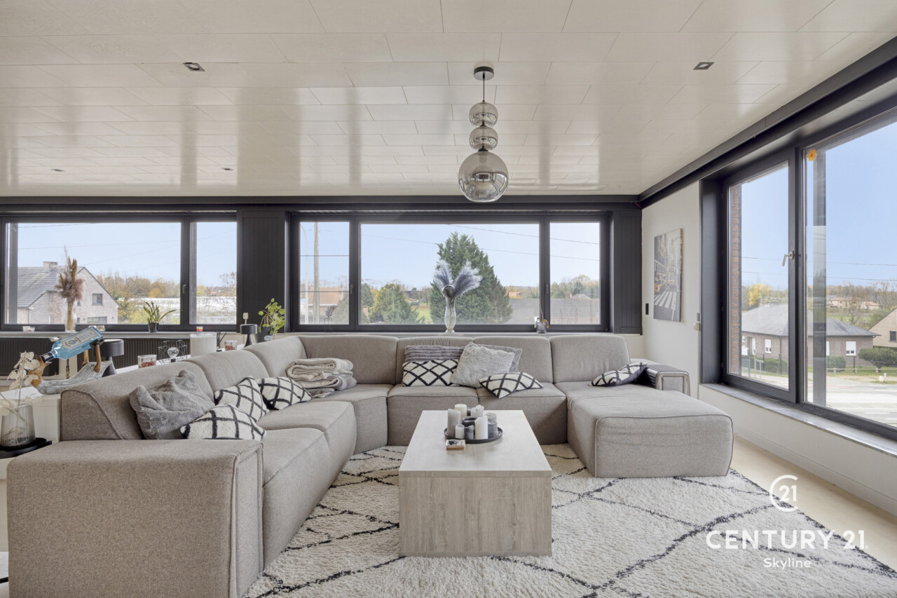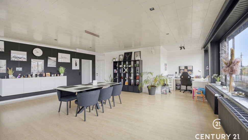 Dit uitzonderlijk ruim en lichtrijk loft-appartement in Tielt-Winge verrast meteen door zijn grote, open leefruimte met prachtige glaspartijen, aangenaam loftgevoel en comfortabele indeling. De leefruimte vormt het hart van het appartement, met plaats voor een ruime zithoek, eetgedeelte en een praktische bureauhoek voor wie graag thuiswerkt. Aansluitend ligt de vernieuwde leefkeuken met groenzicht en toegang tot het ochtendterras. Verder beschikt het appartement over 2 slaapkamers, badkamer en berging/wasplaats. Onder in het gebouw bevindt zich een zeer ruime kelder van ongeveer 50 m² die momenteel tegen vergoeding wordt gebruikt als kleine woonunit (bezett. ter bede), wat een interessante mooie opbrengst oplevert van 550€/m. Achter het gebouw vind je een volledig privatieve buitenruimte met een afgesloten garagebox met elektriciteit en een grote privé-tuin van 4a58 met tuinhuis en een tweede zonneterras. Voor het gebouw zijn bovendien 2 autostaanplaatsen inbegrepen. Het appartement is technisch in orde met een gunstig EPC, conforme elektriciteit, dubbel glas en elektrische rolluiken. Er zijn geen gemeenschappelijke kosten en de ligging is uitstekend: bus voor de deur, de E314 op 10 minuten, en winkels, scholen, sportfaciliteiten en het Gouden-Kruispunt op wandelafstand. Dit is de ideale opportuniteit voor wie op zoek is naar een ruim, licht en comfortabel appartement met een grote tuin én een aantrekkelijk rendementspotentieel! Info en bezoek via info@century21skyline.be