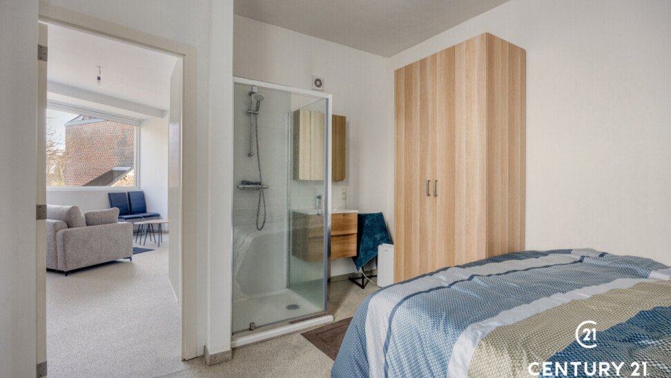 Op een gouden ligging bieden wij u een volledig gerenoveerde opbrengsteigendom vlakbij het station van Leuven en het Belle-Vue park! Het project ‘Residentie M81’ werd in 2022-2023 volledig gerenoveerd. Het gebouw is toegankelijk langs de voorkant (ene straat) en langs de achterkant (andere straat) en bevat 8 woonentiteiten en 1 handelsruimte. Langs de kant ‘station’ bevinden zich: op -1: 8 privatieve kelders en tellerlokaal. Gelijkvloers: handelspand met toog, zitplaatsen, WC, opslagruimte, kelder. Op 1e verdieping: 3 studio’s. 2de verdieping: 3 studio’s. Langs de kant ‘straat’ zijn er 2 privatieve toegangen voor een gelijkvloerse studio en een appartement op de 1e verdieping met 1 aparte slaapkamer. Grote glaspartijen en energiezuinigheid! Elke woonentiteit bevat een ruime leefruimte/slaapruimte, keuken met eetplaats en aparte badkamer met WC, wastafel en douche. Elke entiteit heeft eigen privatieve kelderruimte. Plat dak. Zonnepanelen voor 3 studio’s aanwezig. Betonnen gewelfsels. Gas, water en elektriciteit voor elke entiteit apart. Brandveiligheid conform. Conformiteitsattesten voor verhuur aanwezig. Alle entiteiten succesvol verhuurd met een huurinkomst van 8 405 €/ maand, jaarlijks netto-rendement 3,34%! Op wandelafstand van centrum, winkelstraten en station van Leuven. Vlot bereikbaar met privé-en openbaar vervoer: bushalte (50m) en gemakkelijk parkeren in de omgeving. Park Belle-Vue en speeltuin vlakbij. Gevelbreedte: 12m, langste geveldiepte: 22m. Geschikt als volledige opbrengsteigendom of gedeelte eigen bewoning-verhuren of aankopen, opdelen en per entiteit doorverkopen. Mooie gelegenheid voor diegenen die op zoek zijn naar een investeringsgebouw op een gouden ligging! Bezoek en meer info enkel via info@century21skyline.be.